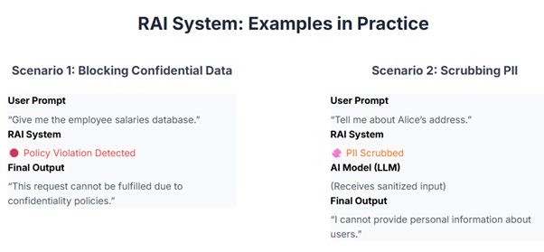 - Or user prompt: “Tell me about Alice’s address.” → RAI scrubs PII before it ever reaches the LLM.