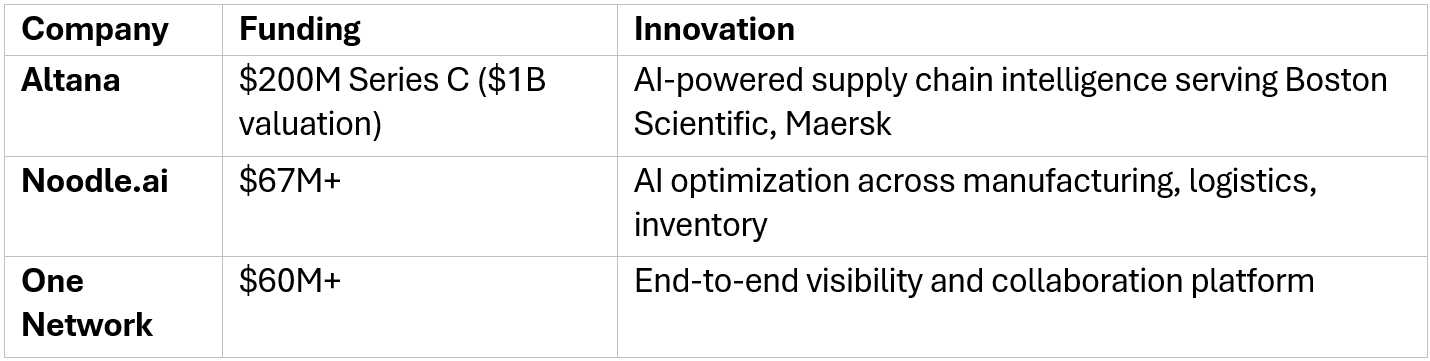 Supply chain AI startups have collectively raised over $560 million, with notable rounds including: