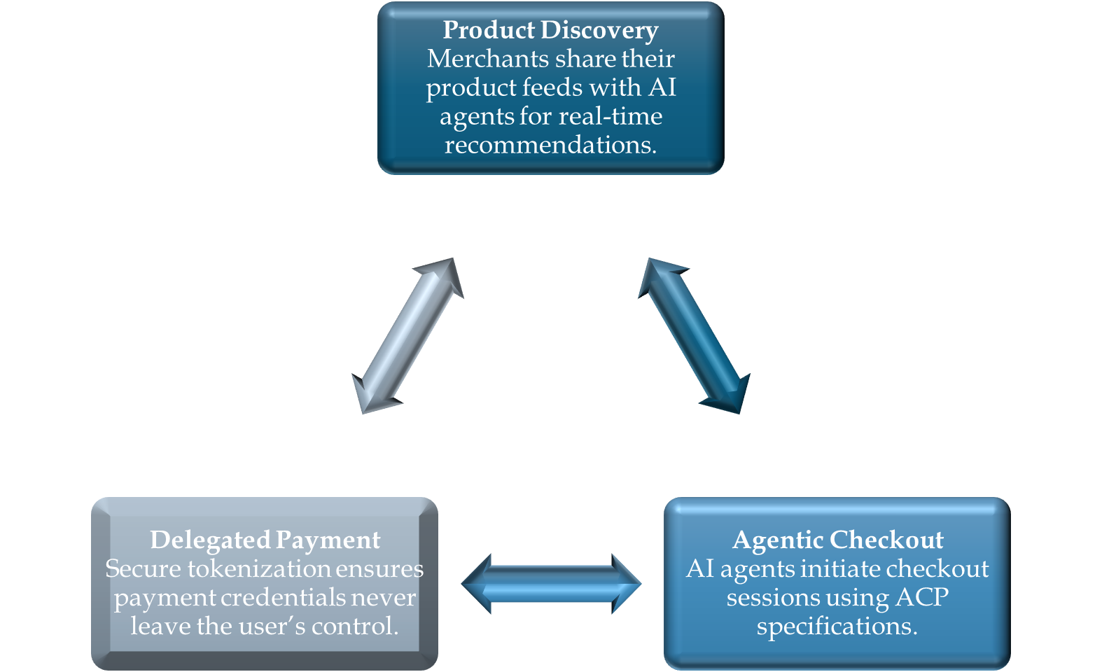 - Agentic Checkout Protocol: Handles product selection, cart creation, and order workflows.